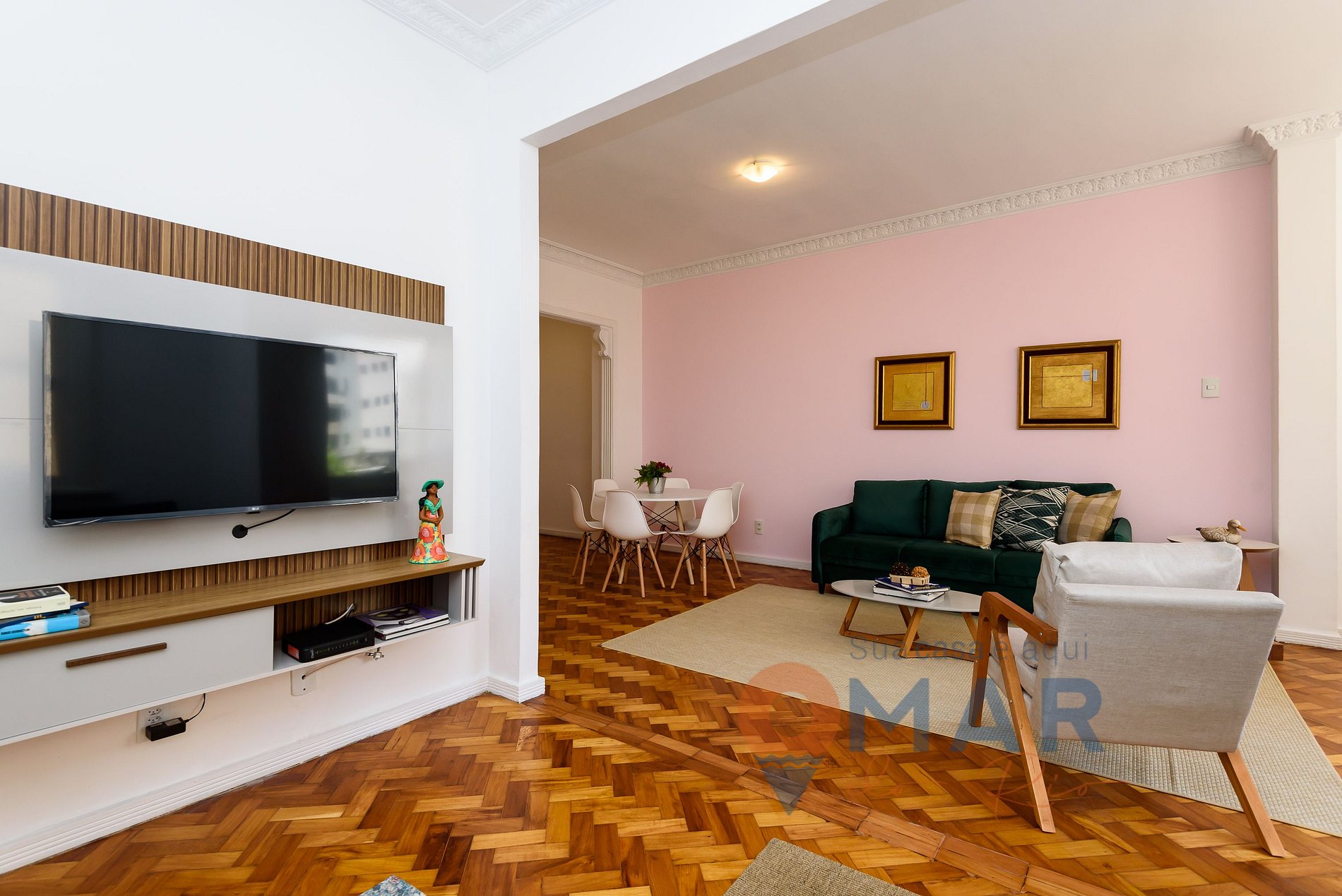 Copacabana está situada na deslumbrante Zona Sul do Rio de Janeiro, sendo amplamente reconhecida por sua maravilhosa praia e um calçadão exuberante revestido com pedras portuguesas brancas e pretas, que formam um mosaico no formato de ondas do mar. Além dessa beleza natural, uma variedade de conveniências aguarda a poucos passos, incluindo mercados, farmácias, restaurantes, lanchonetes e bares, tornando a estadia ainda mais confortável e prática.