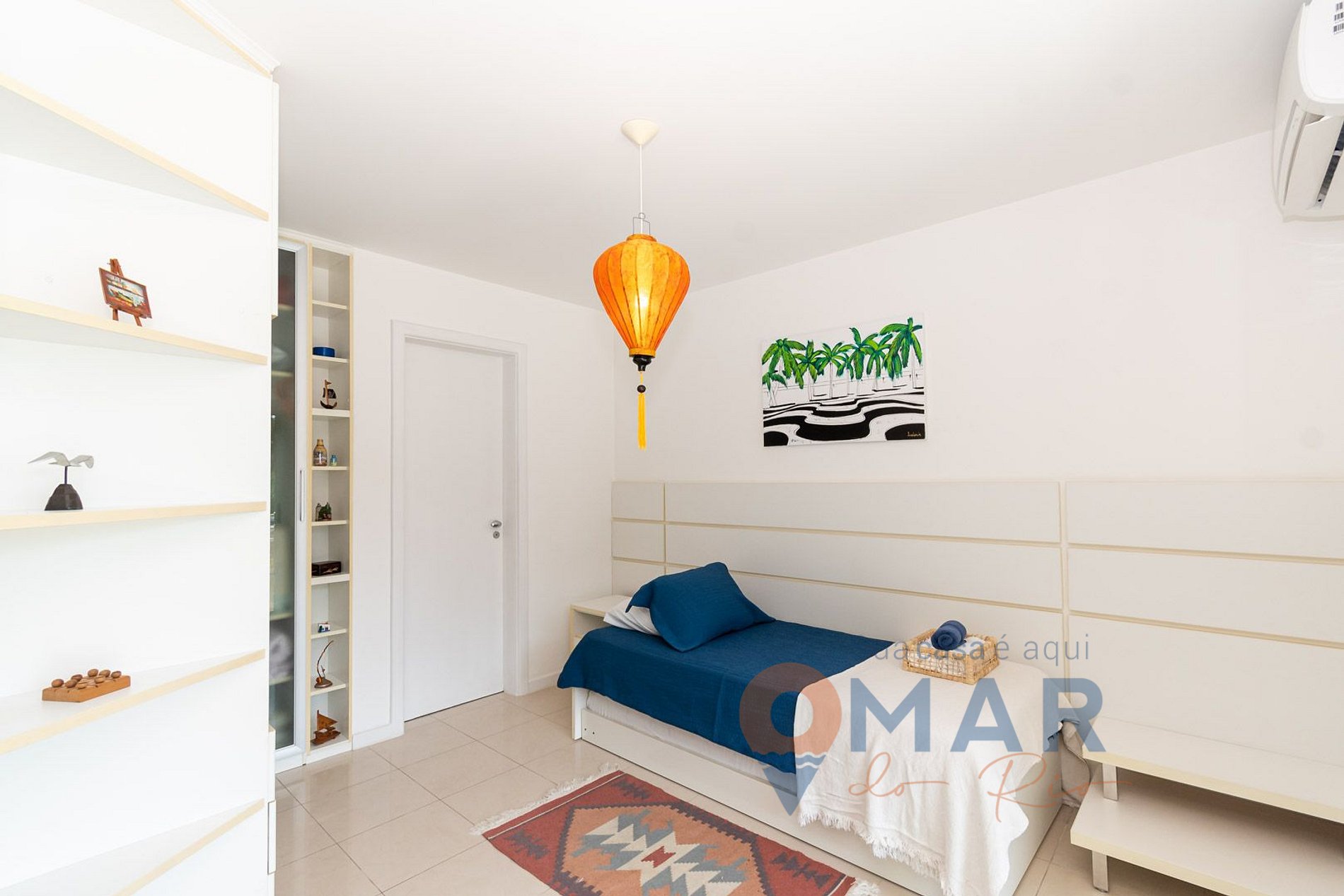Suíte 2: Uma bicama de solteiro (188cm x 88cm), ar-condicionado split, persiana blackout e guarda-roupa.