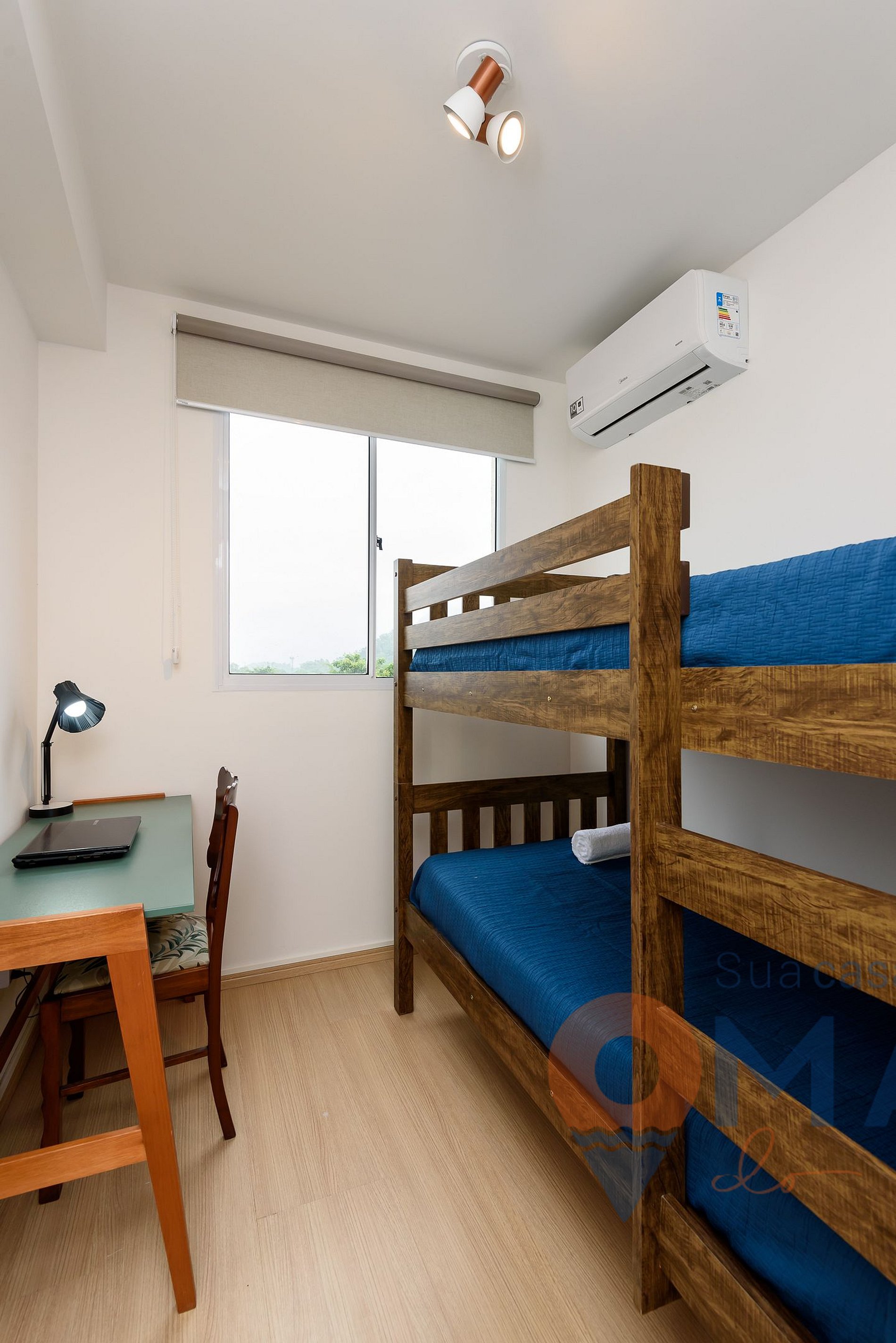 Quarto 2: beliche cama de solteiro (188cm x 88cm), ar-condicionado, workstation, maleiro e cortina blackout.