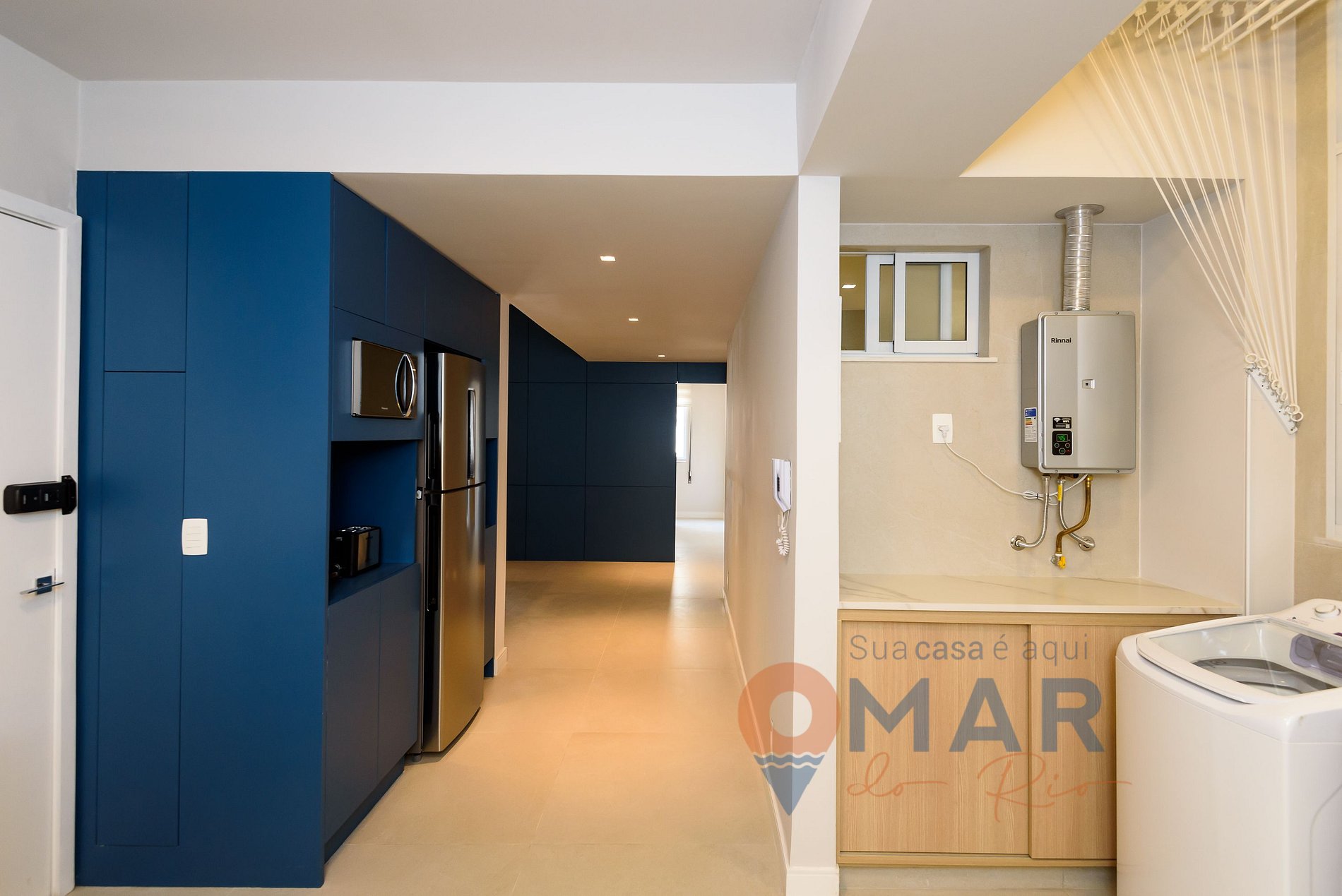 Outros: secador de cabelo, ferro de passar roupa com tábua, máquina de lavar 10,5kg, varal para secar roupa e aspirador de pó.