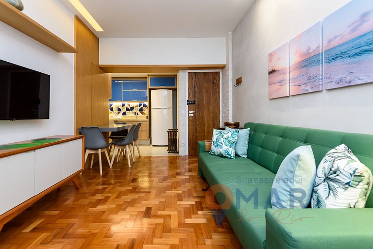 Experimente este amplo apartamento decorado, a apenas 250m da Praia de Copacabana, 450m da Praia do Arpoador e 750m da Praia de Ipanema. Sua localização é um diferencial, próximo às principais praias da região, além de bares, restaurantes, mercados, farmácias e academias. O imóvel conta com internet de 500 Mbps, ar-condicionado, Smart TV com canais a cabo, workstation, cozinha equipada, máquina de lavar, rede de descanso, garagem e diversas outras comodidades.