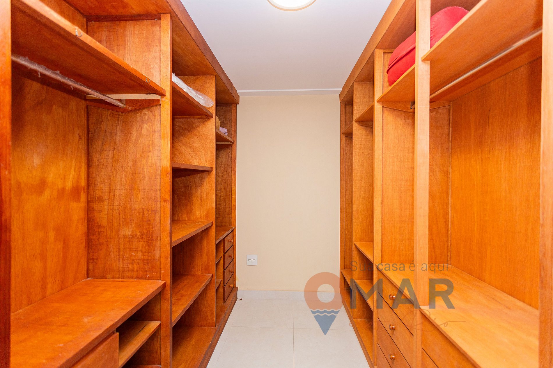 2ª Suíte (2º andar): cama casal padrão (188cm x 138cm), bicama de solteiro, ar-condicionado, persiana blackout e closet.