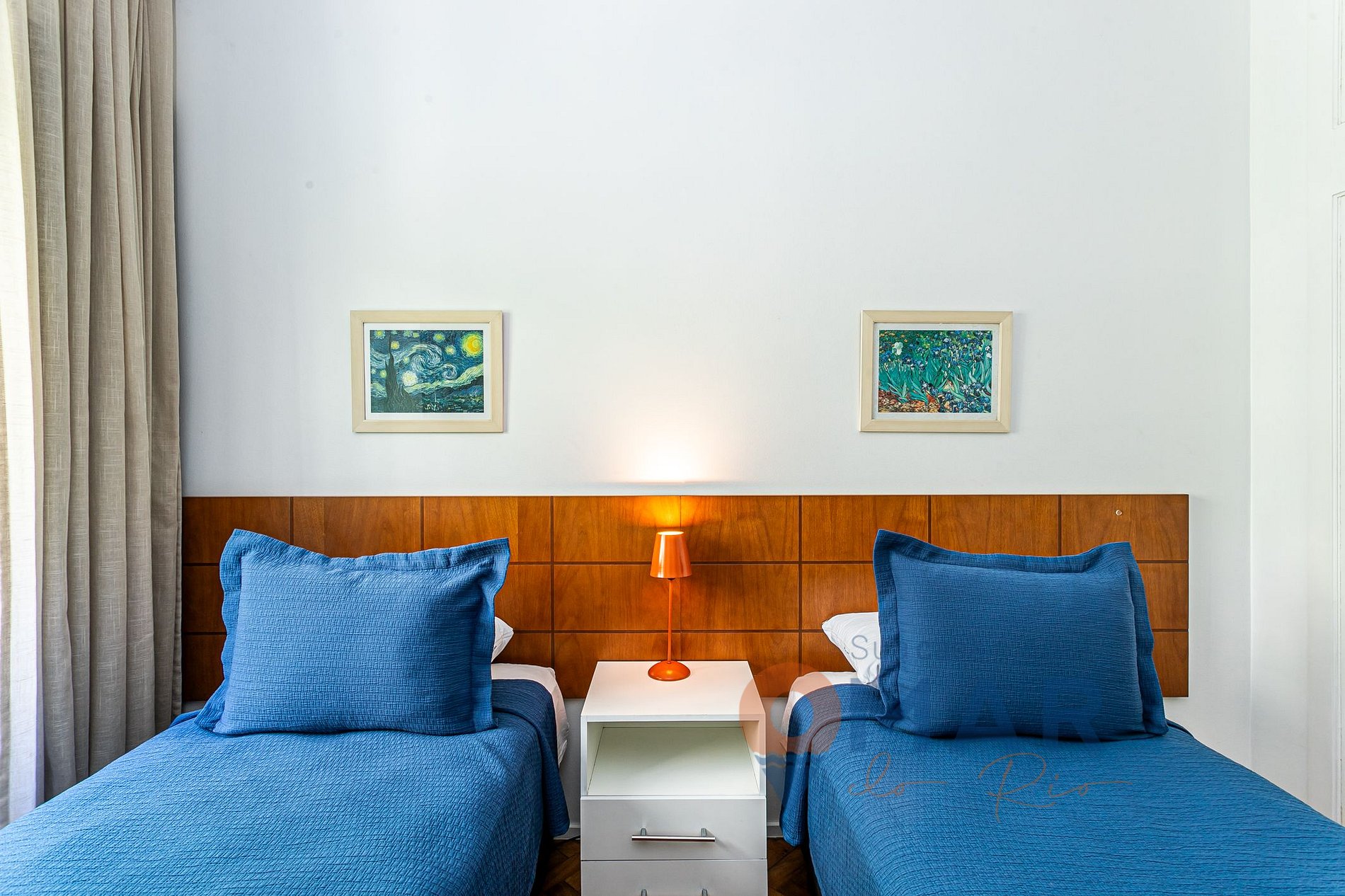 Quarto 3: 2 Camas de solteiro(188cm x 88cm), Smart TV, ar-condicionado, armário de roupas com cabides e cortina blackout.