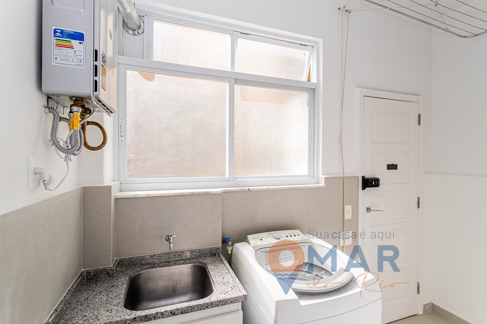 Outros: Máquina de lavar, secador de cabelo, aspirador de pó, varal de roupa e ferro com tábua de passar roupa.