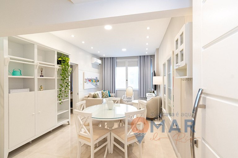 Apartamento moderno com design clean localizado no bairro de Copacabana com ótima infraestrutura, unindo funcionalidade e comodidade, além de oferecer tudo que precisa para se ter uma ótima estadia na cidade do Rio. Possui três quartos, internet de alta velocidade e workstation para realização de Home Office. Nos arredores, você encontrará restaurantes, bares, lanchonetes, farmácias e mercados. A acomodação encontra-se a 130m da estação de metrô General Osório e a 450m da Praia de Copacabana.