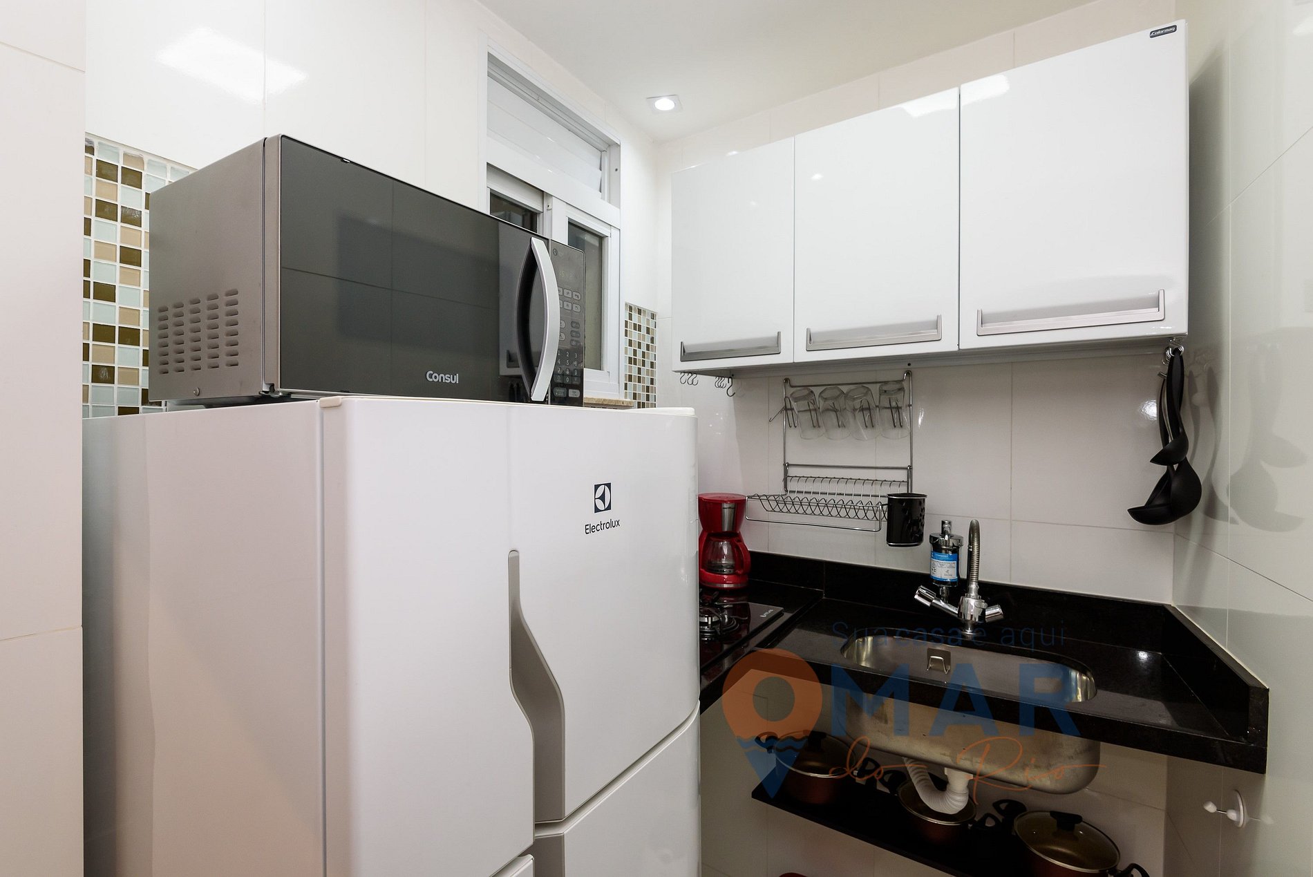 Cozinha: Geladeira, fogão cooktop 4 bocas, micro-ondas, liquidificador, cafeteira e utensílios de cozinha.