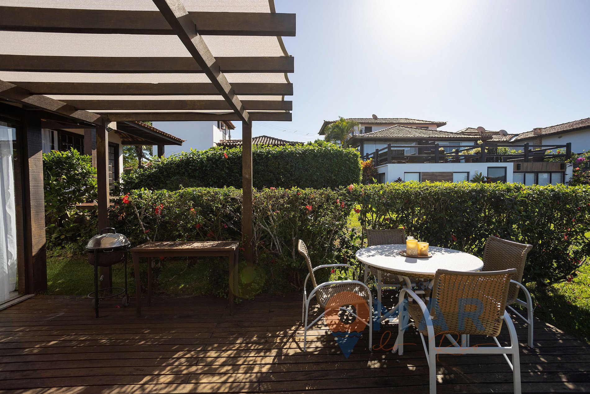 Condomínio excelente, beira mar, com restaurante, piscina, academia, sauna… Fica afastado do centro de búzios. Mas já sabíamos dessa condição e foi perfeito para o que buscávamos. A casa tem uma vista impecável. Para ir andando até a área de lazer do condomínio são 2 minutos. Uma ladeira. Tivemos problema com um dos chuveiros que estava com a resistência queimada, porém foi trocado no terceiro dia de hospedagem, já que não havia manutenção disponível no domingo. De resto a estadia foi impecável. Voltaremos sempre.