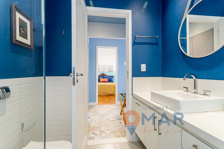 Copacabana está situada na deslumbrante Zona Sul do Rio de Janeiro, sendo amplamente reconhecida por sua maravilhosa praia e um calçadão exuberante revestido com pedras portuguesas brancas e pretas, que formam um mosaico no formato de ondas do mar. Além dessa beleza natural, uma variedade de conveniências aguarda a poucos passos, incluindo mercados, farmácias, restaurantes, lanchonetes e bares, tornando a estadia ainda mais confortável e prática.
