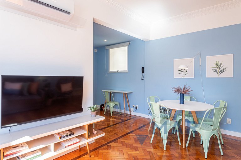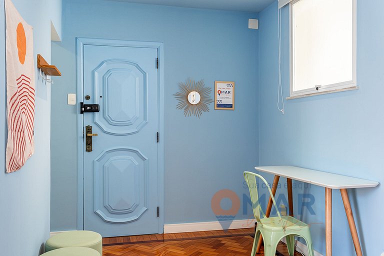Desfrute deste refúgio à beira-mar em Copacabana, com uma decoração encantadora e um ambiente aconchegante. Esta acomodação conta com uma internet de 250mbps, TV, ar-condicionado, workstation, máquina de lavar e outras comodidades. Excelente localização, próximo de mercados, restaurantes, bares, quiosques e outros.