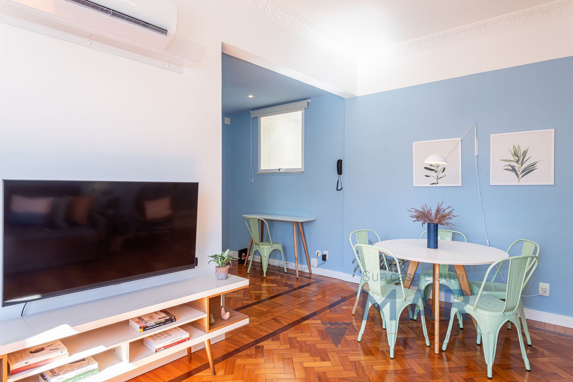 Copacabana está situada na deslumbrante Zona Sul do Rio de Janeiro, sendo amplamente reconhecida por sua maravilhosa praia e um calçadão exuberante revestido com pedras portuguesas brancas e pretas, que formam um mosaico no formato de ondas do mar. Além dessa beleza natural, uma variedade de conveniências aguarda a poucos passos, incluindo mercados, farmácias, restaurantes, lanchonetes e bares, tornando a estadia ainda mais confortável e prática.