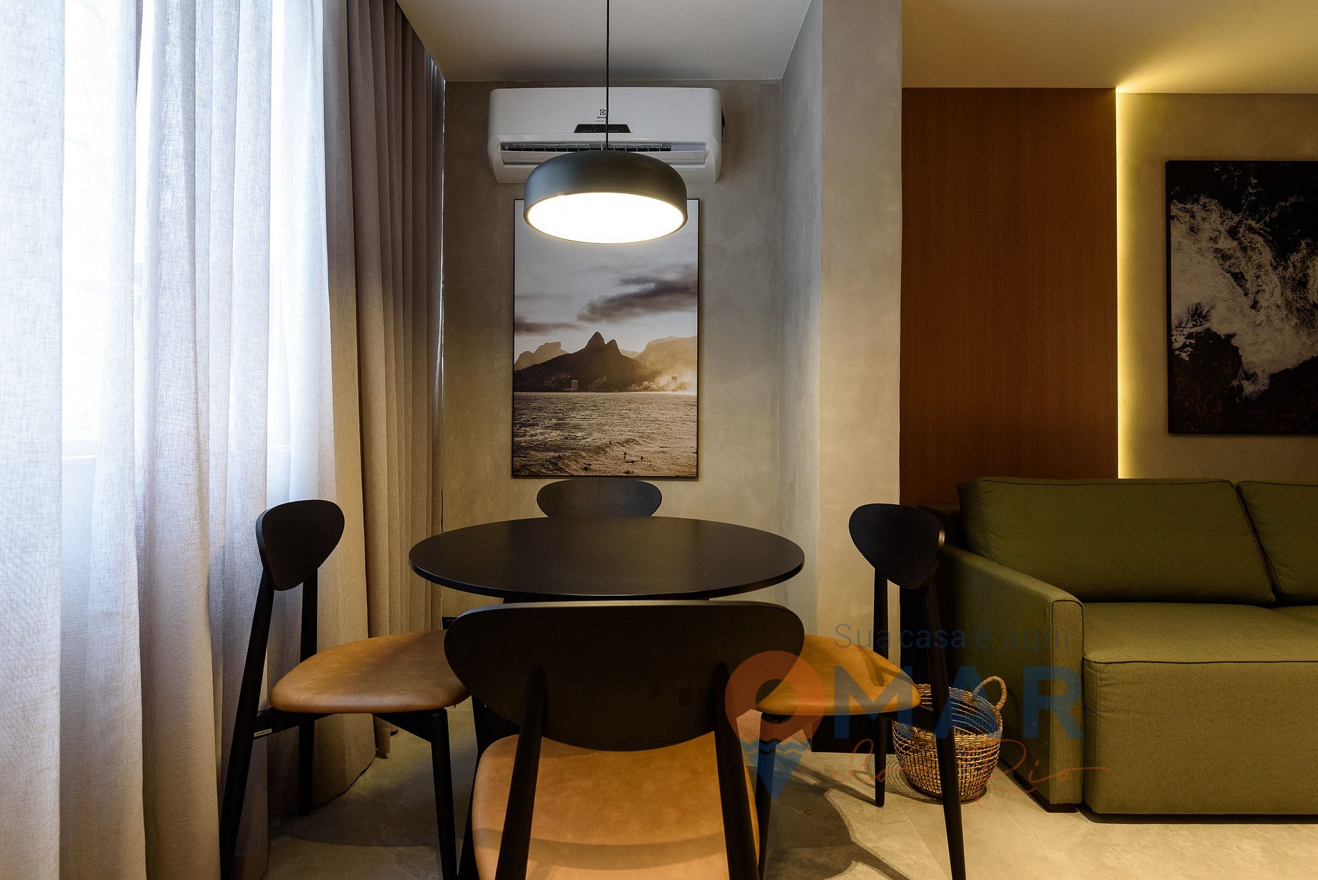 Descubra este moderno apartamento com 1 suíte, sala e cozinha, cuidadosamente decorado em estilo moderno, a poucos passos da famosa praia de Copacabana. Localizado próximo a bares, restaurantes, supermercados e farmácias, este imóvel oferece tudo que você precisa para uma estadia confortável. O apartamento conta com cafeteira, fogão, micro-ondas, geladeira, água quente no chuveiro da suíte, 2 aparelhos de ar condicionado, TVs Smart de 53" no quarto e na sala, internet e máquina de lavar.