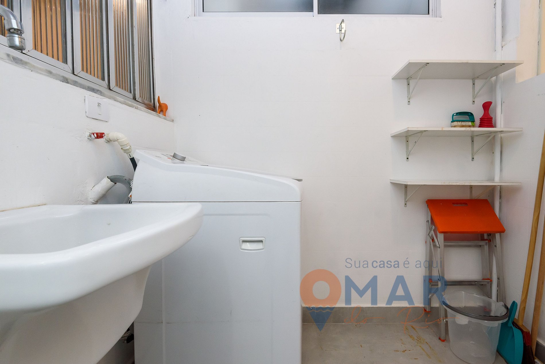 Outros: Máquina de lavar roupa, steamer e secador de cabelo.