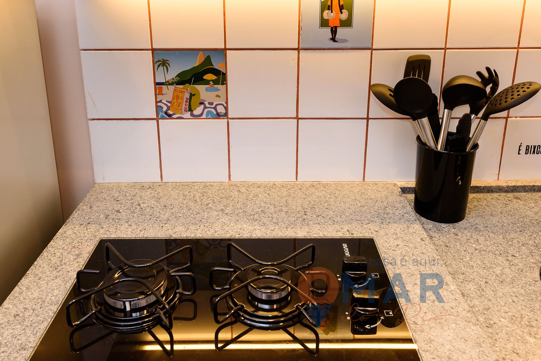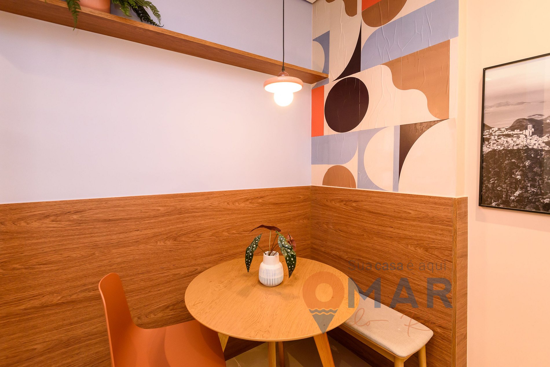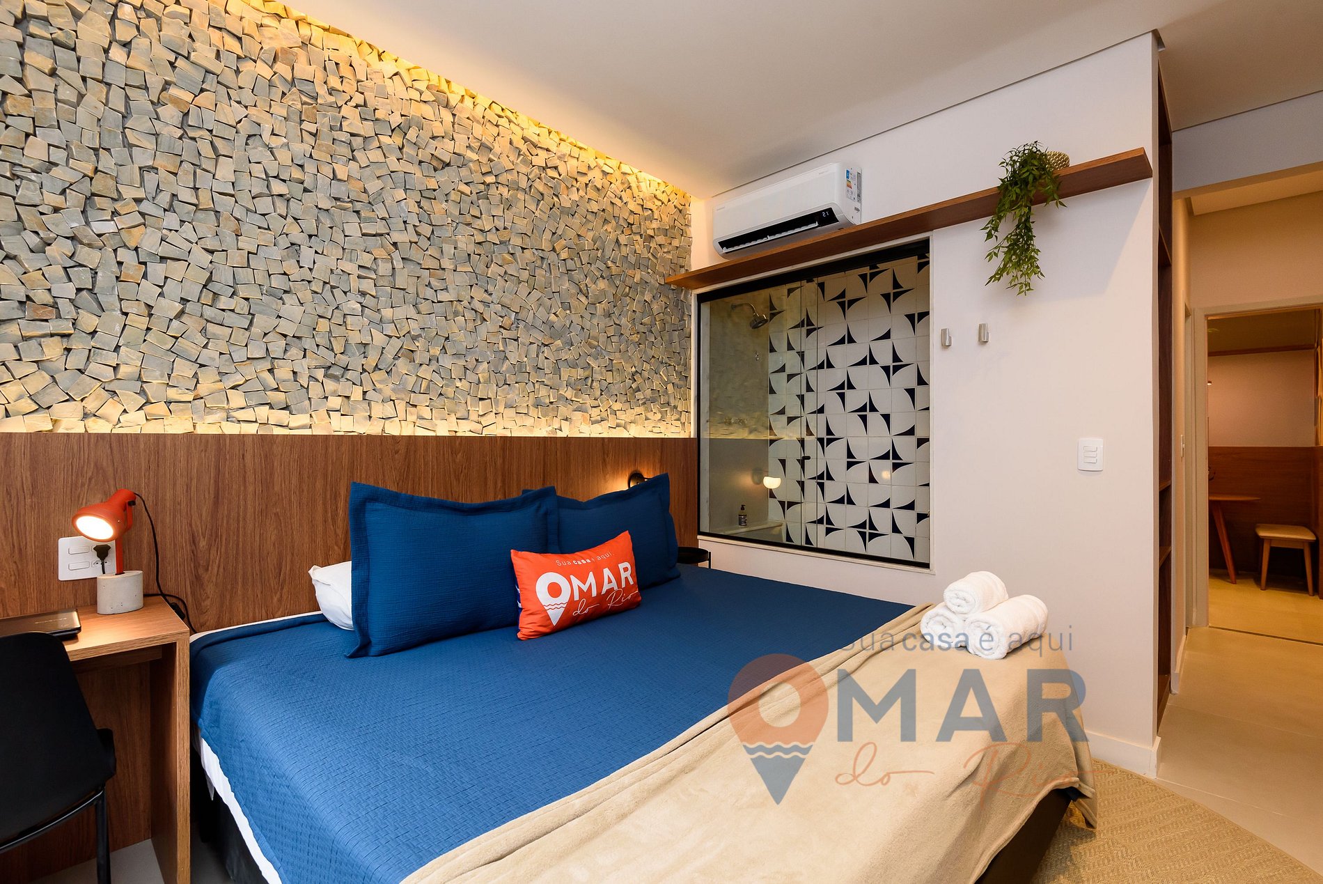Com uma parede em pedra portuguesa que traduz a essência carioca, o Apê do Rio une charme e conforto. O ambiente oferece banheira, ar-condicionado, Smart TV, internet de 400 Mbps, estação de trabalho e cozinha equipada.