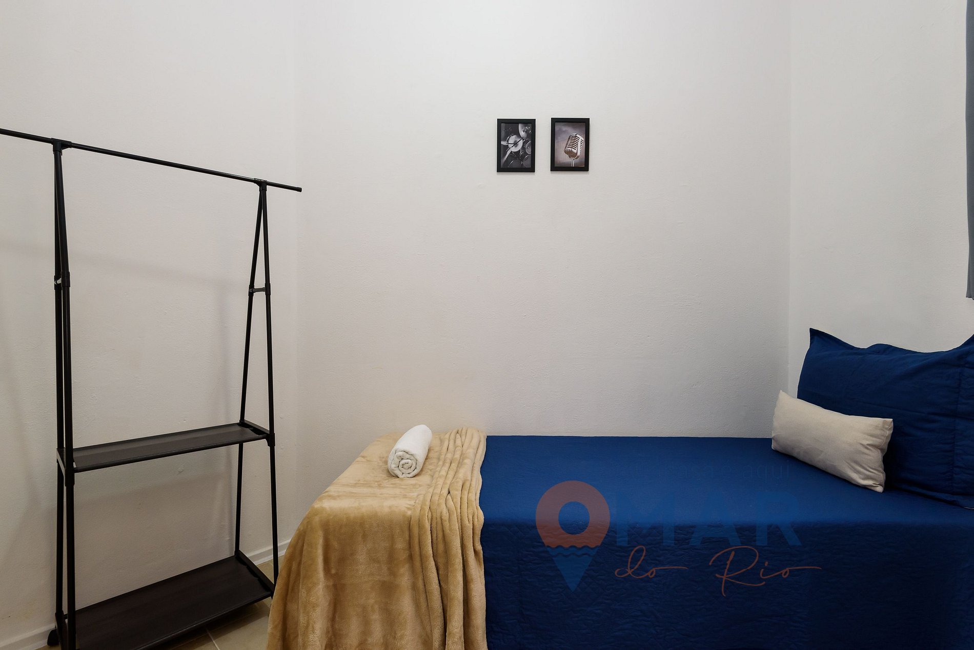 Quarto Dependência: Cama de Solteiro (188cm x 88cm), arara para roupas e cortina blackout.
