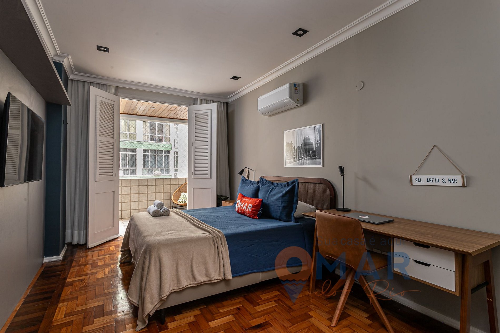Copacabana está situada na deslumbrante Zona Sul do Rio de Janeiro, sendo amplamente reconhecida por sua maravilhosa praia e um calçadão exuberante revestido com pedras portuguesas brancas e pretas, que formam um mosaico no formato de ondas do mar. Além dessa beleza natural, uma variedade de conveniências aguarda a poucos passos, incluindo mercados, farmácias, restaurantes, lanchonetes e bares, tornando a estadia ainda mais confortável e prática.