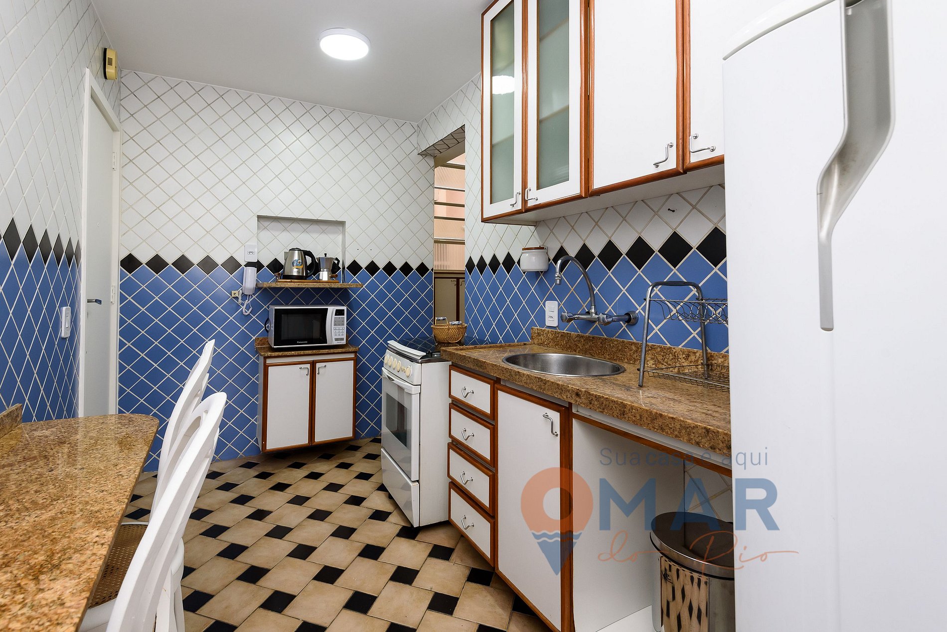Cozinha: Geladeira, micro-ondas, fogão 4 bocas e forno à gás, liquidificador, cafeteira italiana, chaleira elétrica e espremedor.