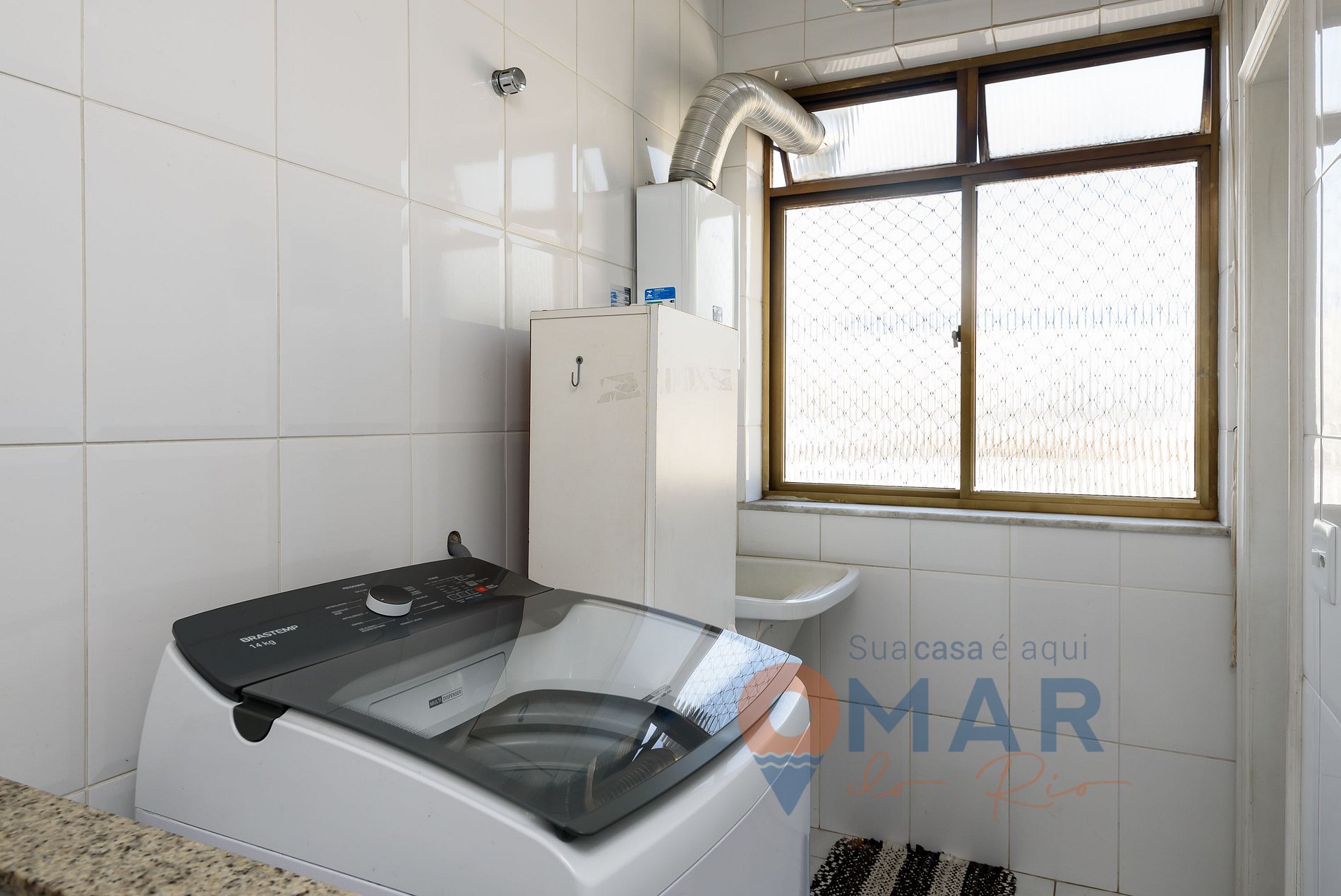 Outros: Secador de cabelo, máquina de lavar roupa (14kg), ferro e tábua de passar roupas.