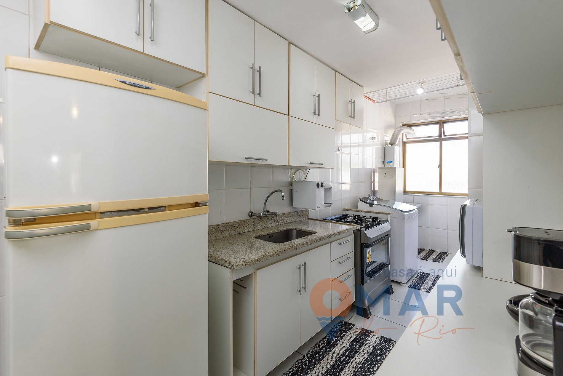 Outros: Secador de cabelo, máquina de lavar roupa (14kg), ferro e tábua de passar roupas.