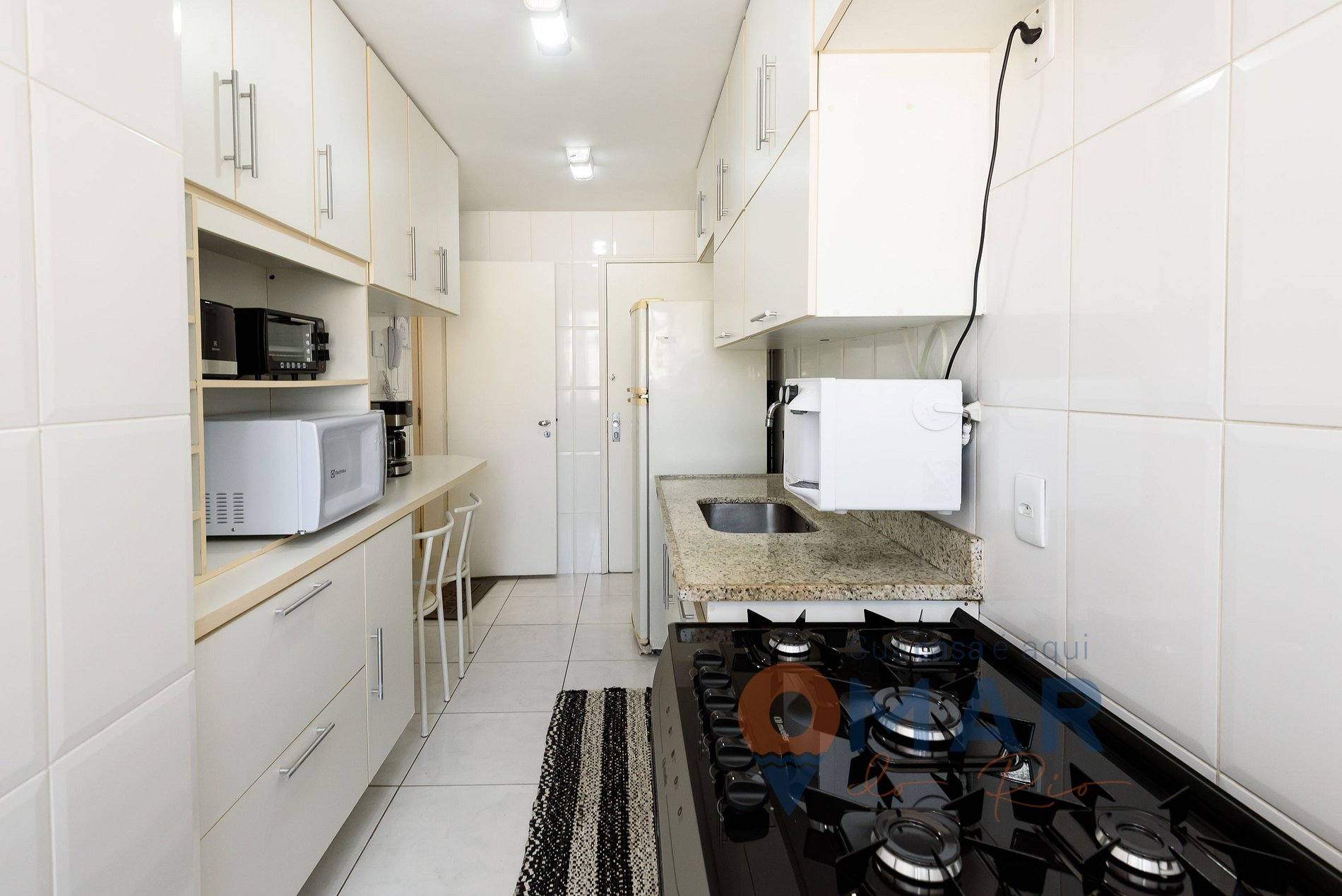 Cozinha: Geladeira, fogão, forninho elétrico, sanduicheira, micro-ondas, torradeira, cafeteira comum, utensílios de cozinha e liquidificador.