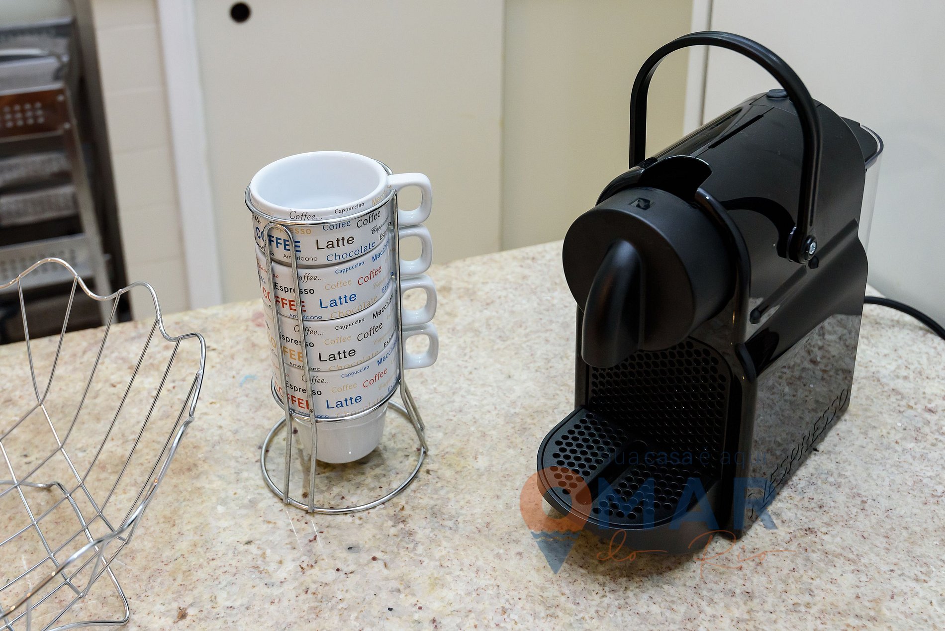 Cozinha: Geladeira; fogão 4 bocas com forno; micro-ondas, cafeteira Nespresso e liquidificador.