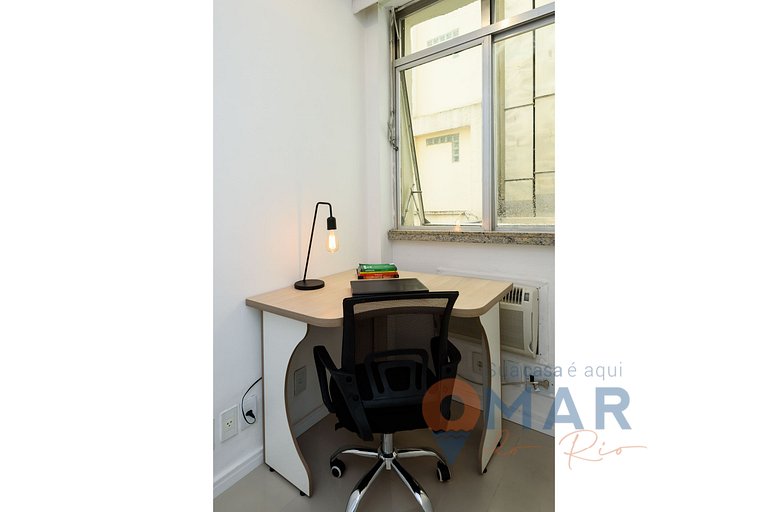 Este amplo apartamento está localizado no coração do bairro e a apenas 2 minutos de caminhada da famosa Praia de Copacabana e a 9 minutos do metrô Siqueira Campos. Ideal para famílias, comporta até 4 pessoas. No interior da acomodação você vai encontrar Smart TV, espaço para trabalho, Internet 350mbps, máquina de lavar e demais itens fundamentais para tornar sua estadia aconchegante e única. Esta acomodação é um convite para famílias e grupos de amigos vivenciarem o universo carioca.