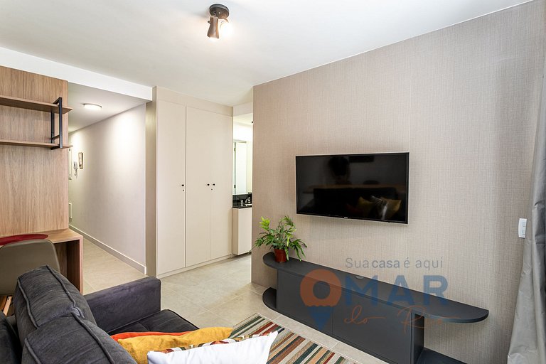 A poucos metros do metrô, comércio farto ao redor, onde é possível fazer absolutamente tudo a pé e algumas quadras da praia.