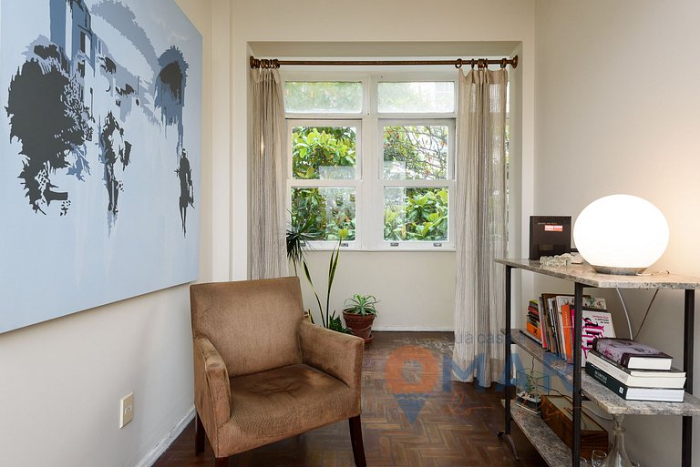 Copacabana está situada na deslumbrante Zona Sul do Rio de Janeiro, sendo amplamente reconhecida por sua maravilhosa praia e um calçadão exuberante revestido com pedras portuguesas brancas e pretas, que formam um mosaico no formato de ondas do mar. Além dessa beleza natural, uma variedade de conveniências aguarda a poucos passos, incluindo mercados, farmácias, restaurantes, lanchonetes e bares, tornando a estadia ainda mais confortável e prática.