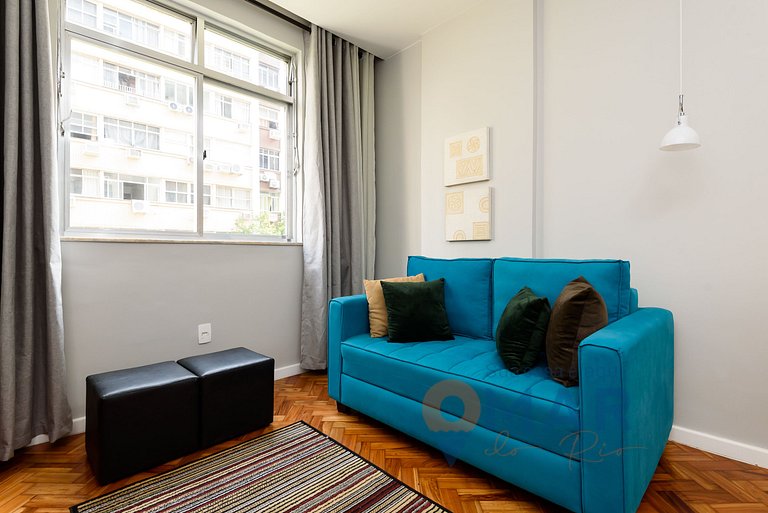 Copacabana está situada na deslumbrante Zona Sul do Rio de Janeiro, sendo amplamente reconhecida por sua maravilhosa praia e um calçadão exuberante revestido com pedras portuguesas brancas e pretas, que formam um mosaico no formato de ondas do mar. Além dessa beleza natural, uma variedade de conveniências aguarda a poucos passos, incluindo mercados, farmácias, restaurantes, lanchonetes e bares, tornando a estadia ainda mais confortável e prática.