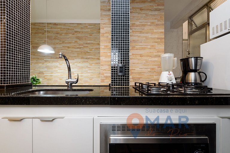 Copacabana está situada na deslumbrante Zona Sul do Rio de Janeiro, sendo amplamente reconhecida por sua maravilhosa praia e um calçadão exuberante revestido com pedras portuguesas brancas e pretas, que formam um mosaico no formato de ondas do mar. Além dessa beleza natural, uma variedade de conveniências aguarda a poucos passos, incluindo mercados, farmácias, restaurantes, lanchonetes e bares, tornando a estadia ainda mais confortável e prática.